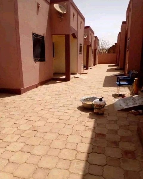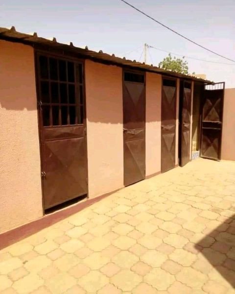 Chambre salon à Saaba vers le marché, non loin du goudron. Douche, wc, cuisine interne. Plafonnée, carrelée, ventilée, vitrée, cour entièrement pavée, possibilité de garer véhicule. Toilettes  externes pour les visiteurs.